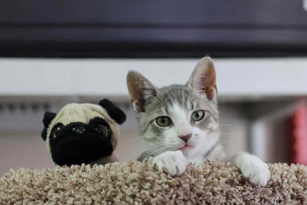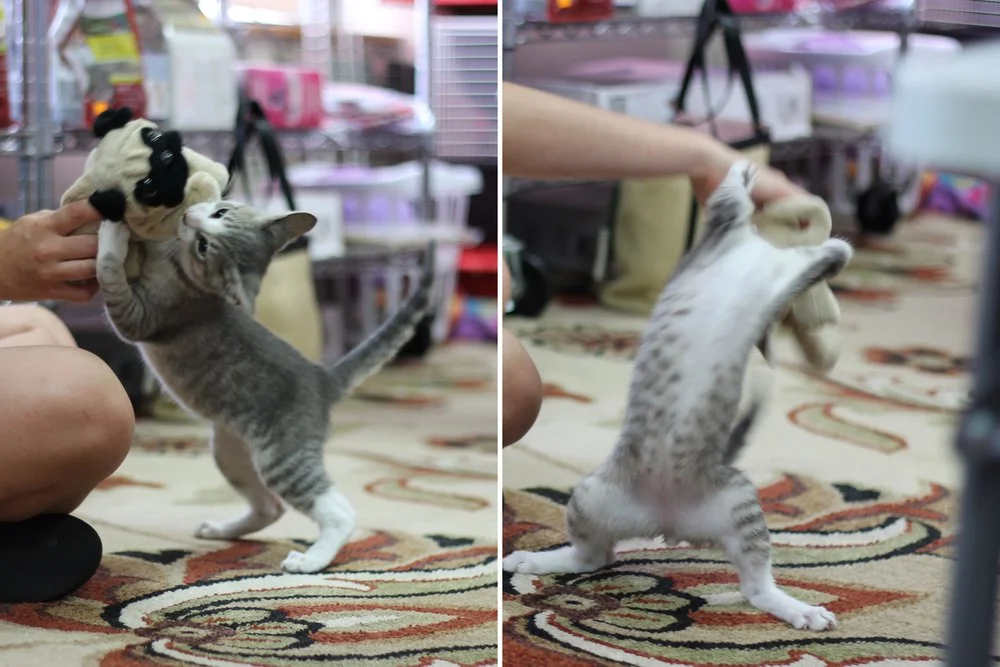 This is Glamour who was so excited and kept exploring everywhere! Glamour and Smokey are still looking for furrever, loving homes.