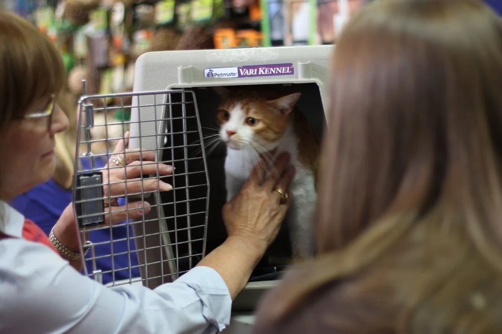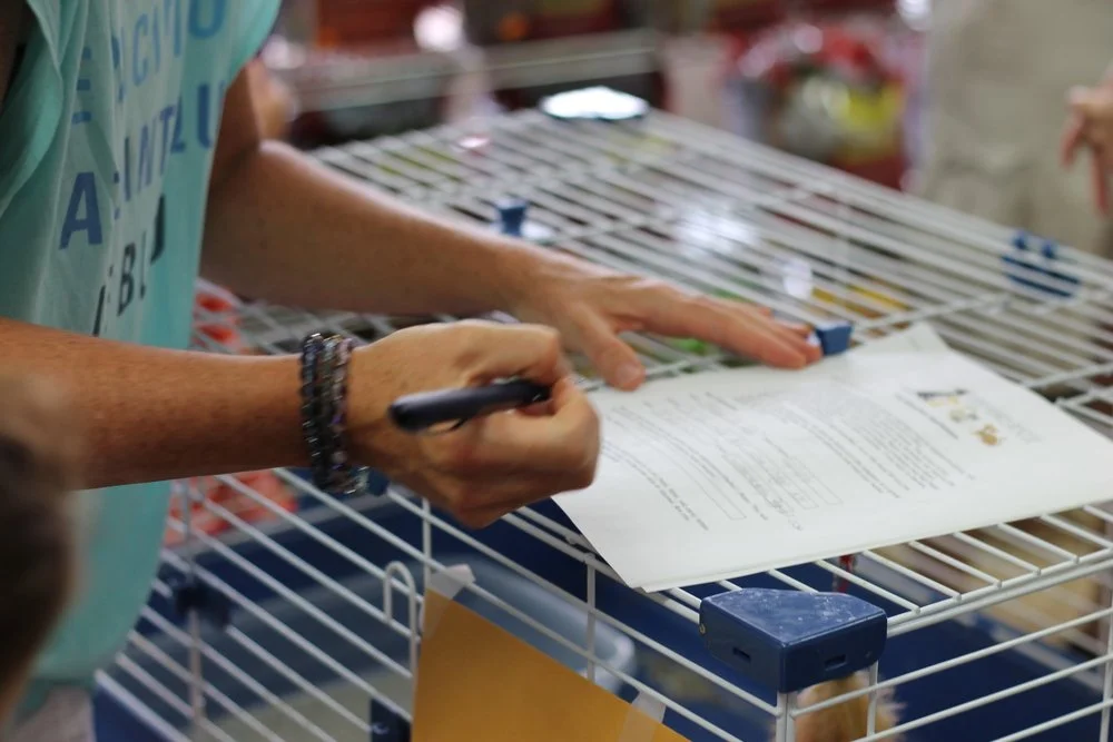 Adopted! Wanda's new family finalizes some paperwork to take her home. An exciting day for both the family and the precious kitten.