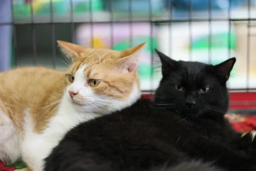 These two 10-month old kittens were held in quarantine due to legal issues with the shelter they were formerly at. They spent almost half their lives and most of their prime adopting age in a cage. They are looking for homes still but are sweet as pie!