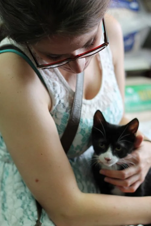 Here is a little girl bonding with the two cats. She wanted a feline friend so badly and spent hours petting them and doing a lot of hoping. As a responsible parent, her mother promised to talk with the rest of the family about the possibility of adopting a kitten in the near future.